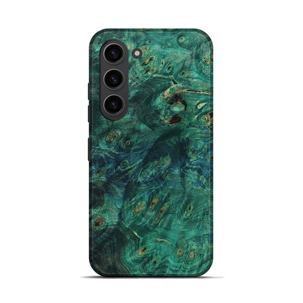 Our Live Edge cases are made from an amazing combination of stabilized wood burl and colored resin. Our stabilization process hardens the wood to protect against cracks and breaks. We do every step of the process at our shop in Northern Indiana. Perfectly fits the Galaxy S23.