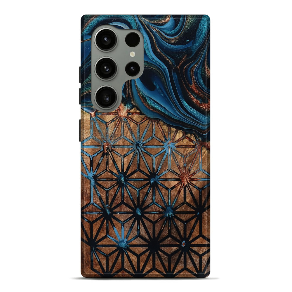 Our Live Edge cases are made from an amazing combination of stabilized wood burl and colored resin. Our stabilization process hardens the wood to protect against cracks and breaks. We do every step of the process at our shop in Northern Indiana. Perfectly fits the Galaxy S24 Ultra.