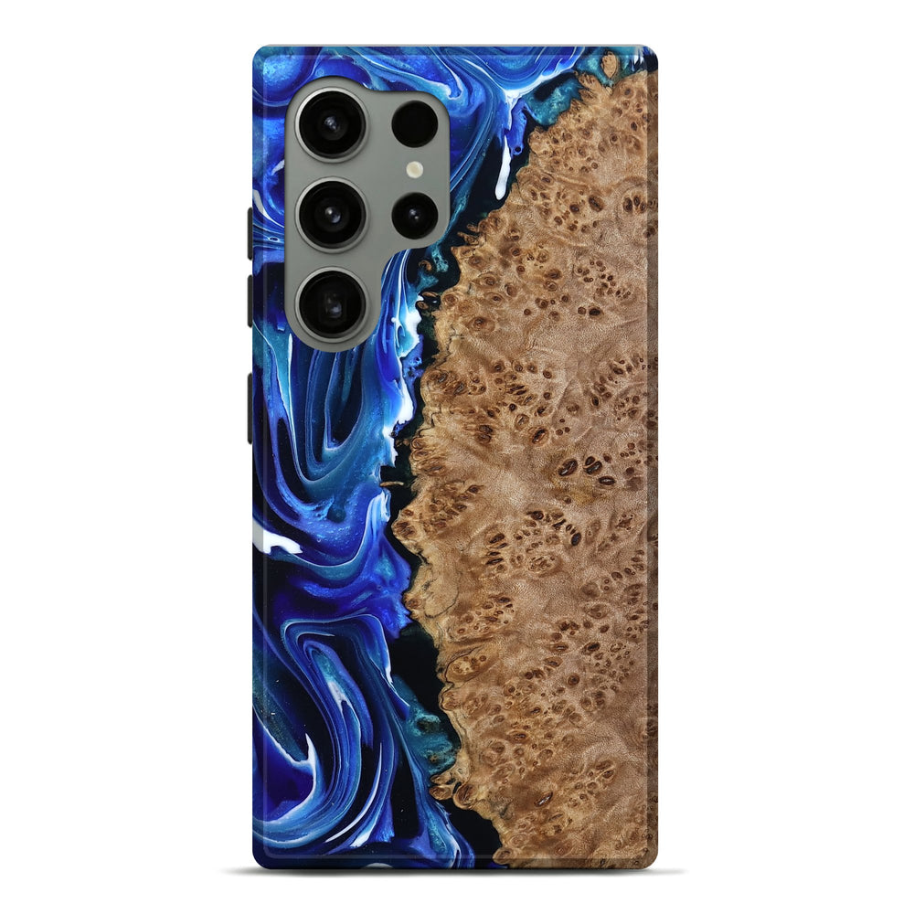 Our Live Edge cases are made from an amazing combination of stabilized wood burl and colored resin. Our stabilization process hardens the wood to protect against cracks and breaks. We do every step of the process at our shop in Northern Indiana. Perfectly fits the Galaxy S24 Ultra.