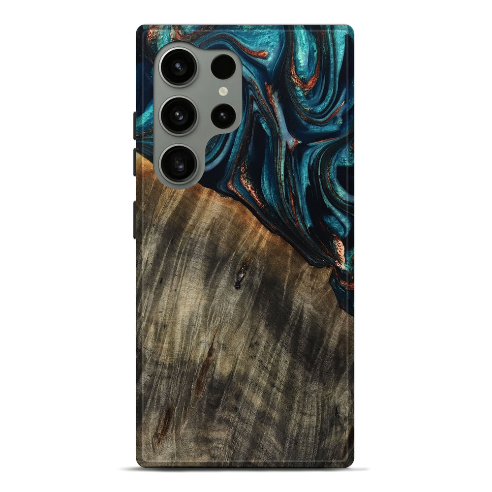 Our Live Edge cases are made from an amazing combination of stabilized wood burl and colored resin. Our stabilization process hardens the wood to protect against cracks and breaks. We do every step of the process at our shop in Northern Indiana. Perfectly fits the Galaxy S24 Ultra.