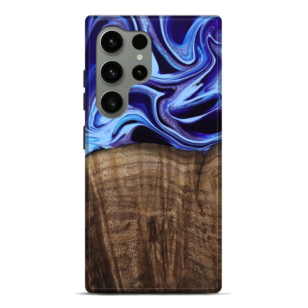 Our Live Edge cases are made from an amazing combination of stabilized wood burl and colored resin. Our stabilization process hardens the wood to protect against cracks and breaks. We do every step of the process at our shop in Northern Indiana. Perfectly fits the Galaxy S24 Ultra.