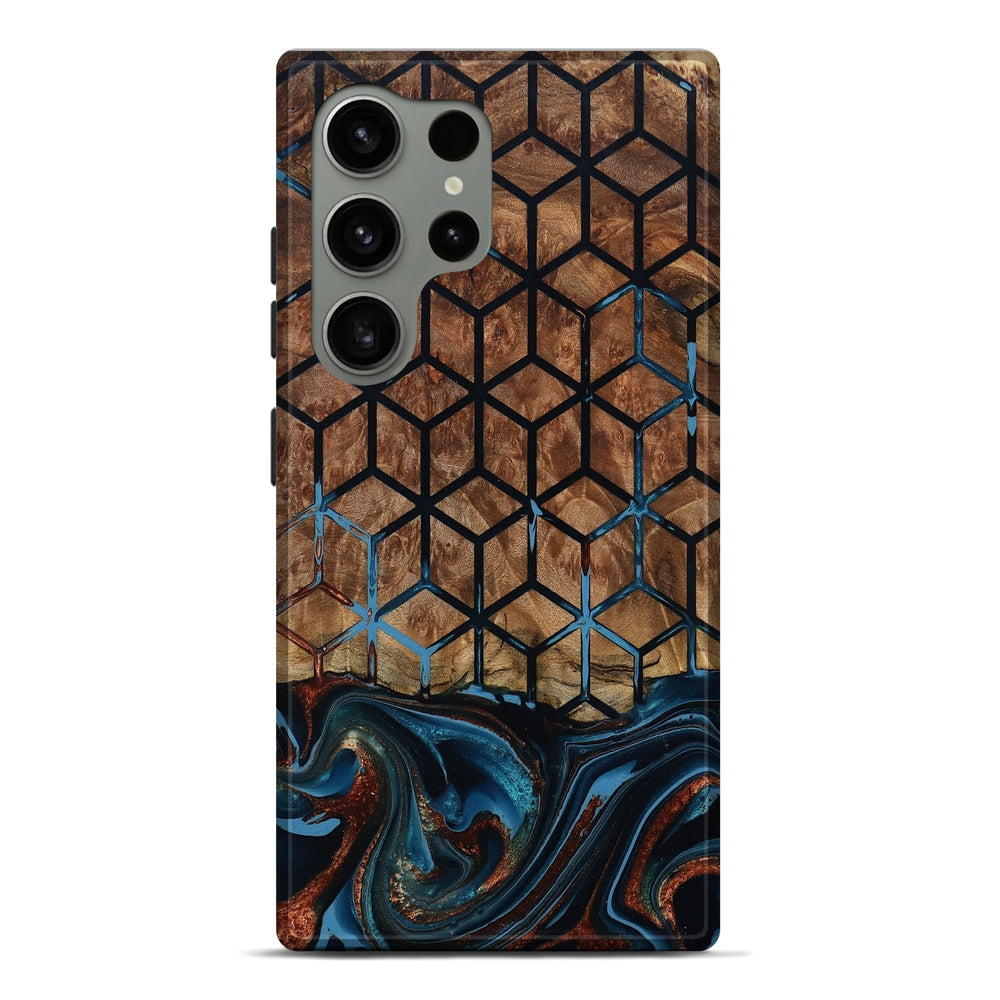 Our Live Edge cases are made from an amazing combination of stabilized wood burl and colored resin. Our stabilization process hardens the wood to protect against cracks and breaks. We do every step of the process at our shop in Northern Indiana. Perfectly fits the Galaxy S24 Ultra.