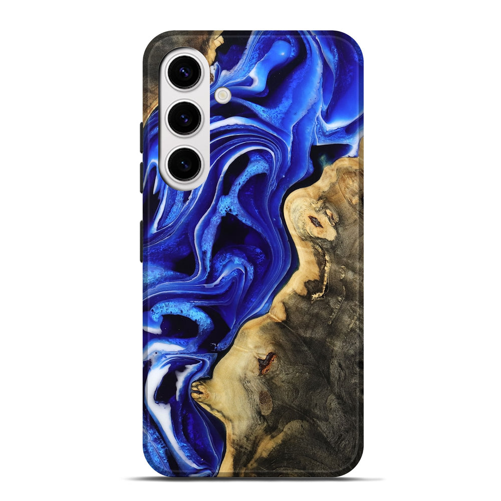 Our Live Edge cases are made from an amazing combination of stabilized wood burl and colored resin. Our stabilization process hardens the wood to protect against cracks and breaks. We do every step of the process at our shop in Northern Indiana. Perfectly fits the Galaxy S25 Plus.