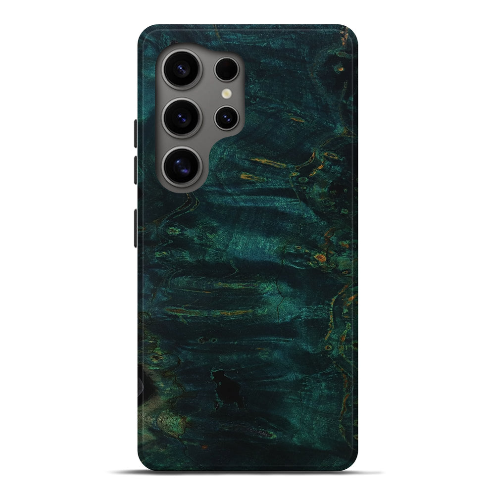 Our Live Edge cases are made from an amazing combination of stabilized wood burl and colored resin. Our stabilization process hardens the wood to protect against cracks and breaks. We do every step of the process at our shop in Northern Indiana. Perfectly fits the Galaxy S25 Ultra.