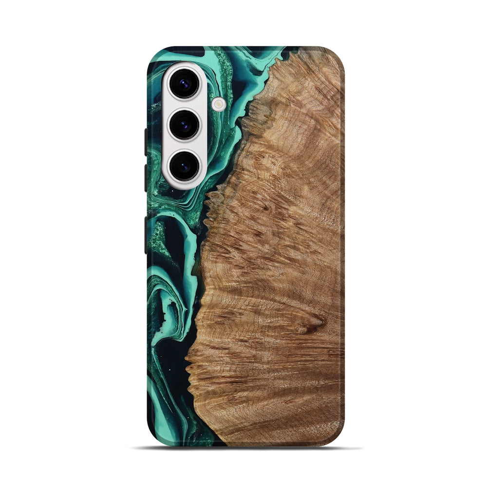 Our Live Edge cases are made from an amazing combination of stabilized wood burl and colored resin. Our stabilization process hardens the wood to protect against cracks and breaks. We do every step of the process at our shop in Northern Indiana. Perfectly fits the Galaxy S25.