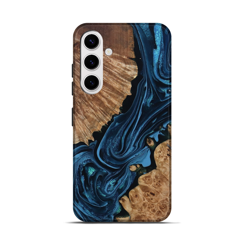 Our Live Edge cases are made from an amazing combination of stabilized wood burl and colored resin. Our stabilization process hardens the wood to protect against cracks and breaks. We do every step of the process at our shop in Northern Indiana. Perfectly fits the Galaxy S25.