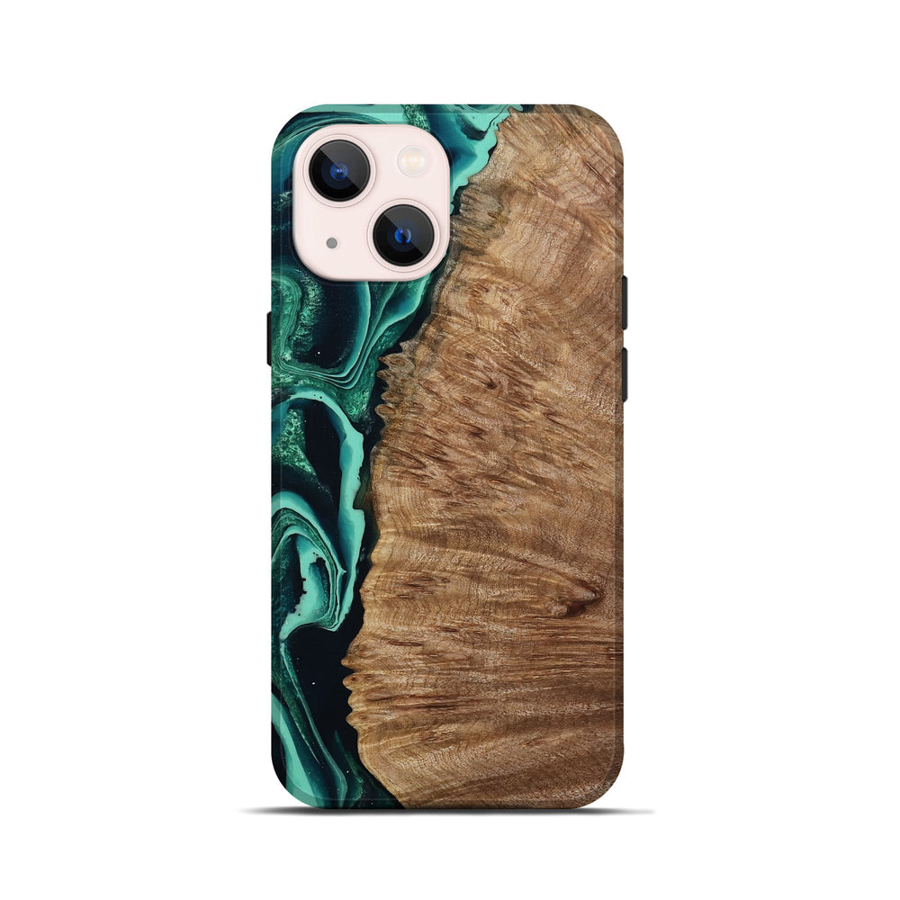 Our Live Edge cases are made from an amazing combination of stabilized wood burl and colored resin. Our stabilization process hardens the wood to protect against cracks and breaks. We do every step of the process at our shop in Northern Indiana. Perfectly fits the iPhone 13 mini.