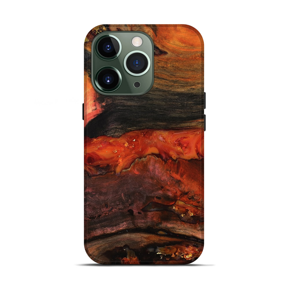Our Live Edge cases are made from an amazing combination of stabilized wood burl and colored resin. Our stabilization process hardens the wood to protect against cracks and breaks. We do every step of the process at our shop in Northern Indiana. Perfectly fits the iPhone 13 Pro.