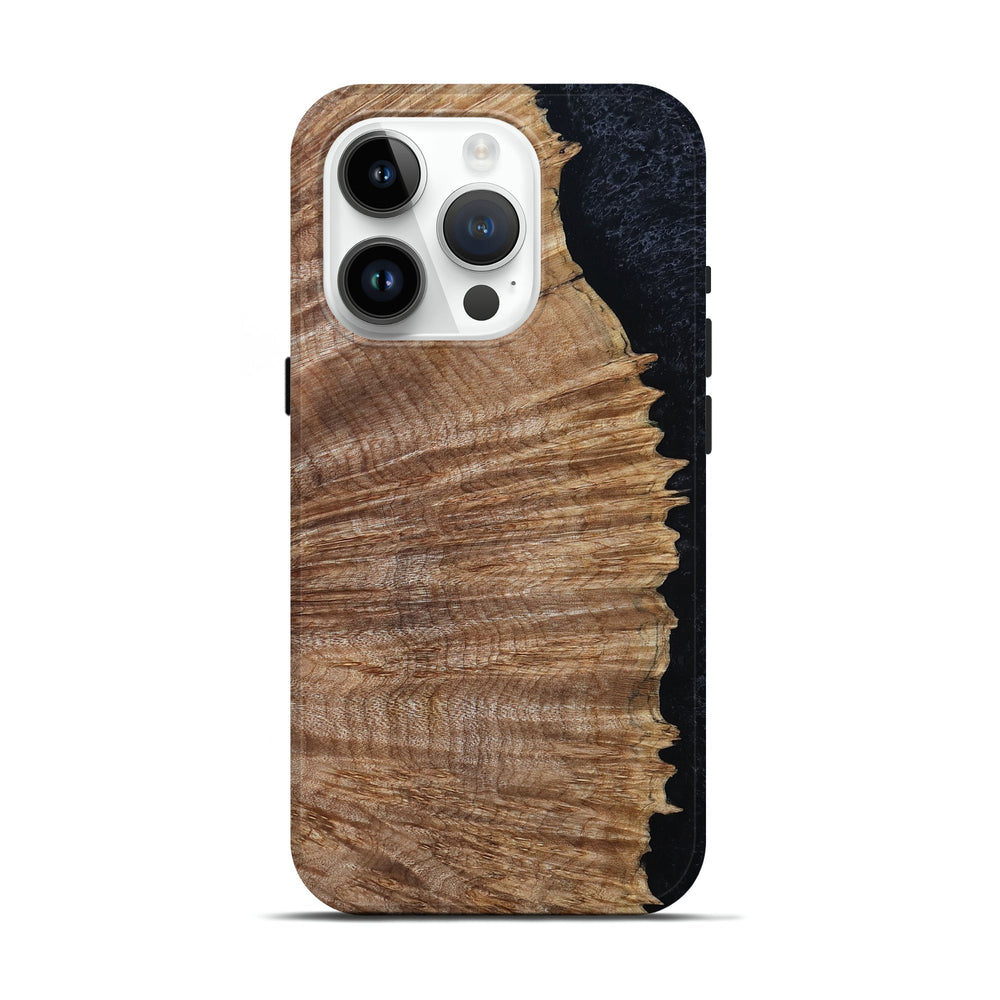 Our Live Edge cases are made from an amazing combination of stabilized wood burl and colored resin. Our stabilization process hardens the wood to protect against cracks and breaks. We do every step of the process at our shop in Northern Indiana. Perfectly fits the iPhone 15 Pro.