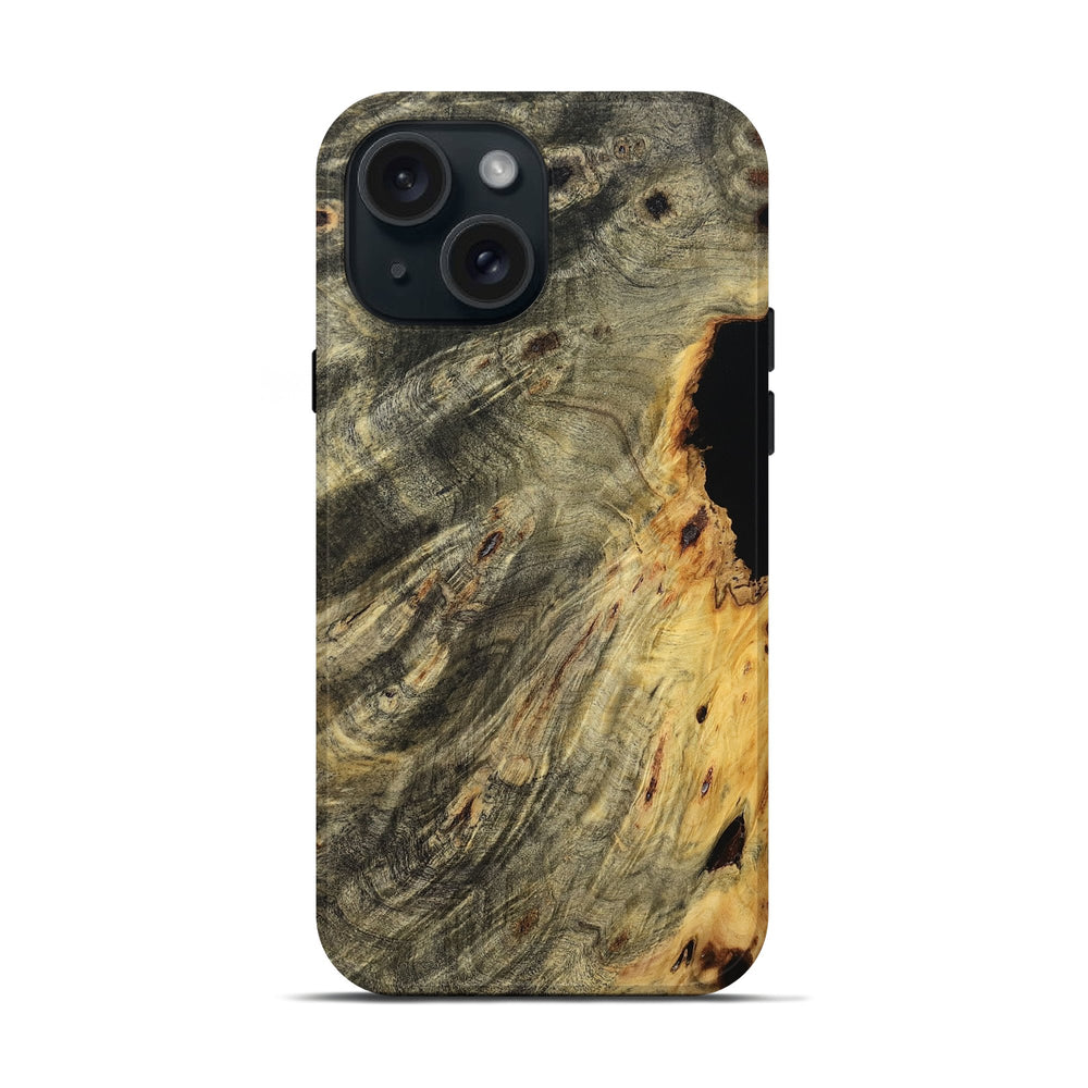Our Live Edge cases are made from an amazing combination of stabilized wood burl and colored resin. Our stabilization process hardens the wood to protect against cracks and breaks. We do every step of the process at our shop in Northern Indiana. Perfectly fits the iPhone 15.