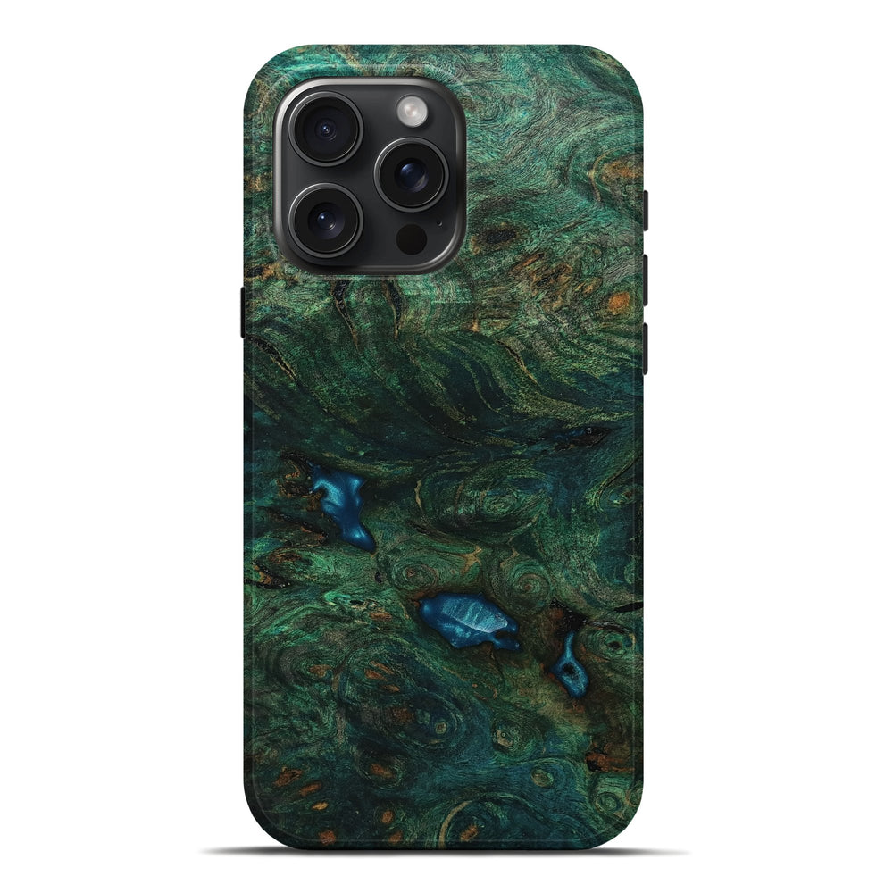 Our Live Edge cases are made from an amazing combination of stabilized wood burl and colored resin. Our stabilization process hardens the wood to protect against cracks and breaks. We do every step of the process at our shop in Northern Indiana. Perfectly fits the iPhone 16 Pro Max.