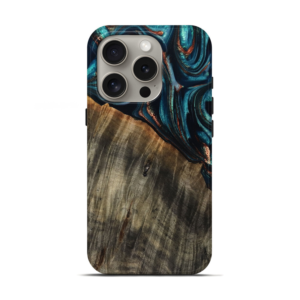 Our Live Edge cases are made from an amazing combination of stabilized wood burl and colored resin. Our stabilization process hardens the wood to protect against cracks and breaks. We do every step of the process at our shop in Northern Indiana. Perfectly fits the iPhone 16 Pro.