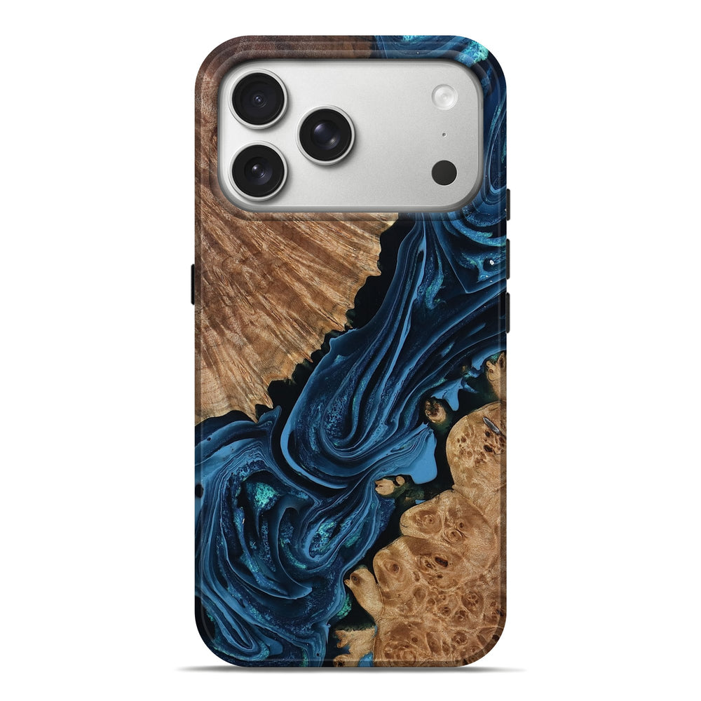 Our Live Edge cases are made from an amazing combination of stabilized wood burl and colored resin. Our stabilization process hardens the wood to protect against cracks and breaks. We do every step of the process at our shop in Northern Indiana. Perfectly fits the iPhone 17 Pro Max.
