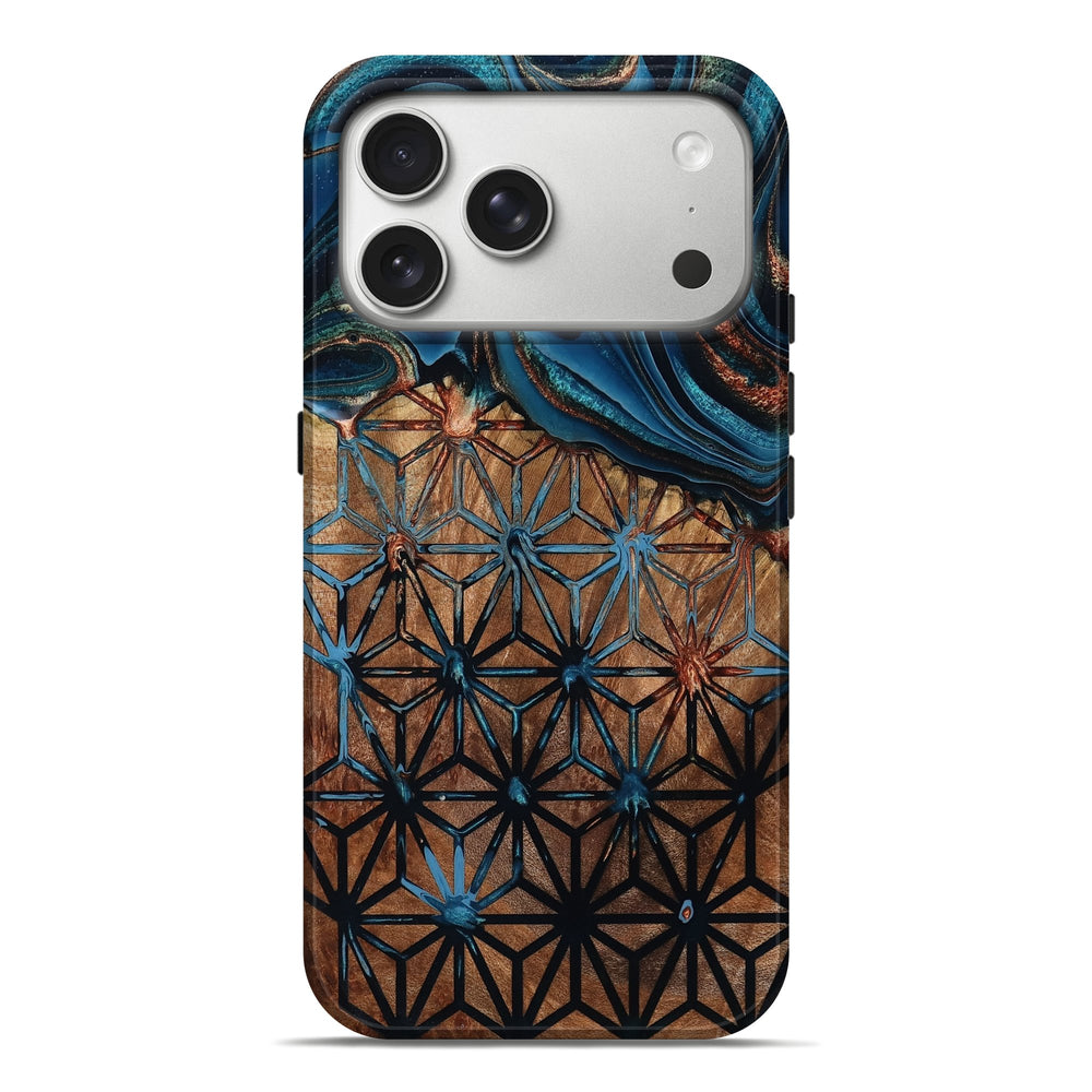 Our Live Edge cases are made from an amazing combination of stabilized wood burl and colored resin. Our stabilization process hardens the wood to protect against cracks and breaks. We do every step of the process at our shop in Northern Indiana. Perfectly fits the iPhone 17 Pro Max.