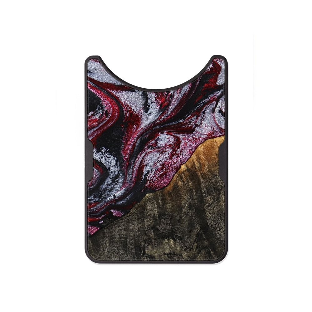 Abagail has rich, swirling patterns of deep red, black, and white that create a striking contrast. The warm, natural tones of the Buckeye wood add a beautiful, earthy touch to the overall look.
