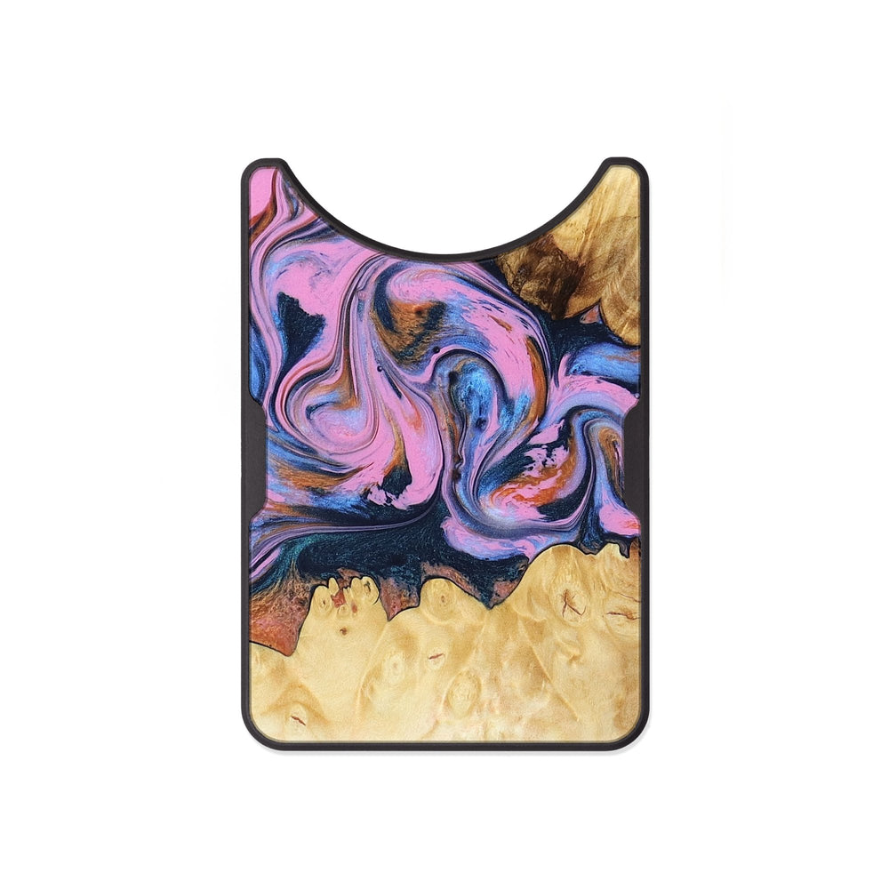 Ailany has soft pink and blue swirls that dance across a warm wood background. The piece showcases a blend of natural tones and smooth patterns, creating a calming visual effect.