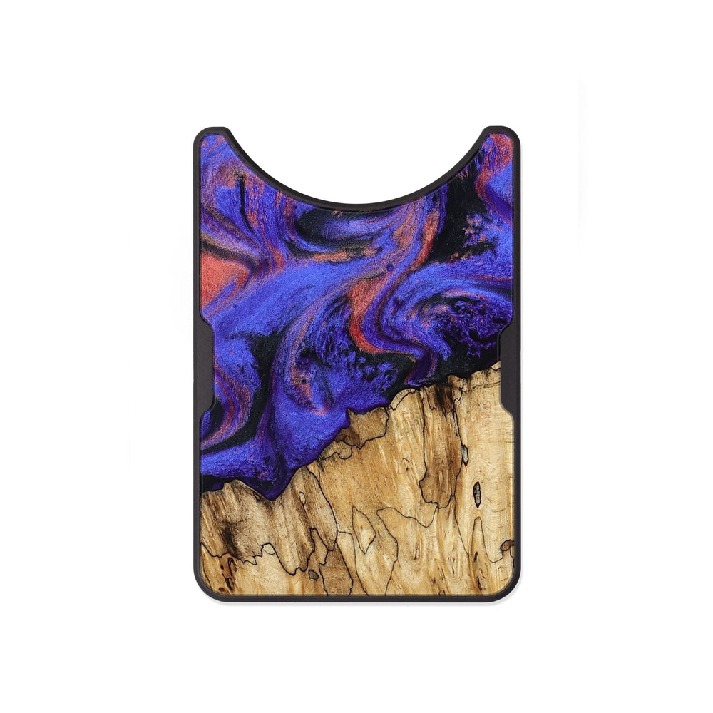 Alden has a beautiful blend of rich, warm wood tones paired with vibrant swirls of purple and red. The swirling pattern creates a striking contrast against the natural wood grain, making it a unique piece of art.