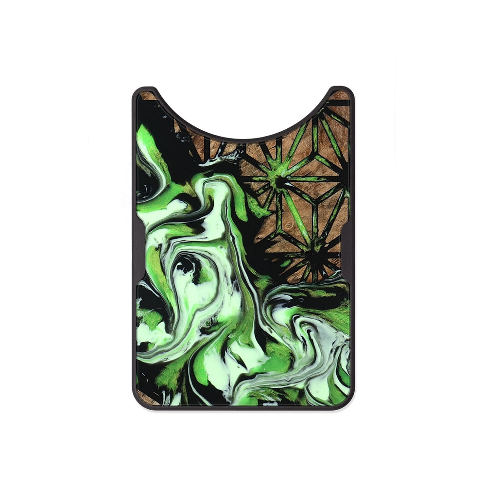Alesha has a rich Maple wood base with a warm, natural tone. It features a striking green and white pattern that creates a sense of movement across the surface.