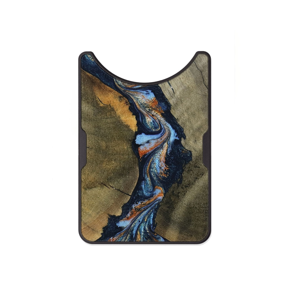 Aleta has beautiful, swirling patterns in rich blues and warm oranges. The wood showcases a smooth texture with contrasting shades that create a stunning visual flow.