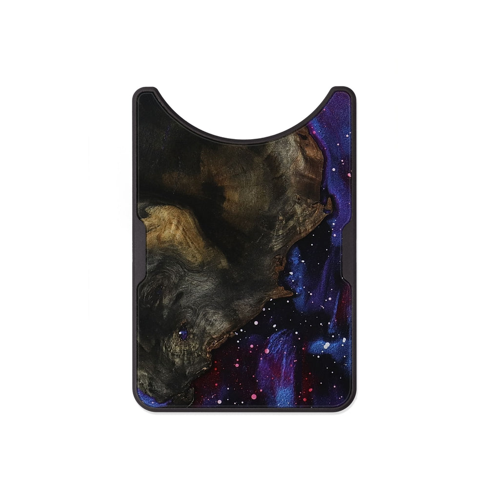 Alia is a striking piece of Buckeye wood featuring deep, rich tones and smooth textures. It showcases a beautiful blend of dark colors with hints of blue and purple, creating a stunning cosmic pattern.