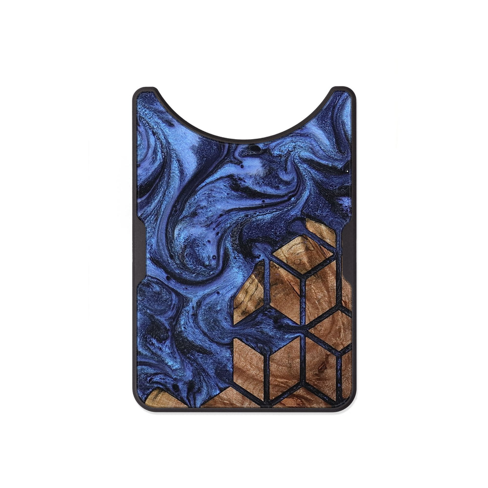 Arleen has beautiful Maple wood with rich, warm tones. It features a striking geometric pattern that contrasts nicely with the flowing, deep blue background.