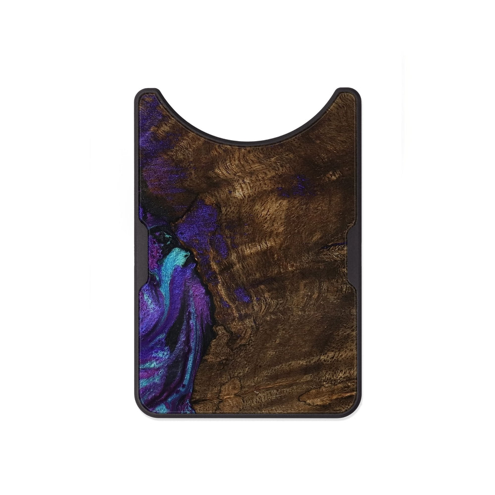Arsenio has vibrant purple and blue hues swirling through its warm brown wood. The colors create a beautiful contrast, highlighting the natural grain of the wood.