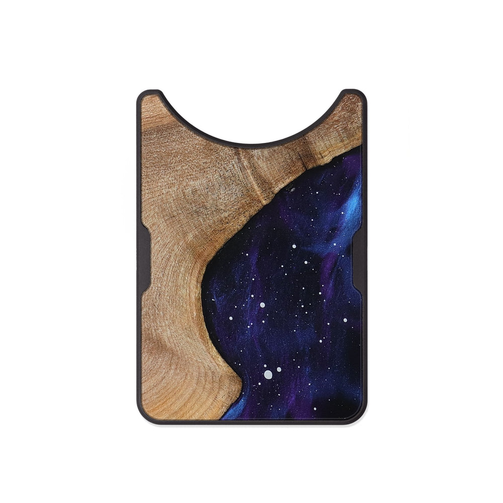 Artie is a piece of maple wood that showcases a smooth, natural grain with warm tones. The design contrasts beautifully with a deep, dark background sprinkled with stars, creating an intriguing visual effect.