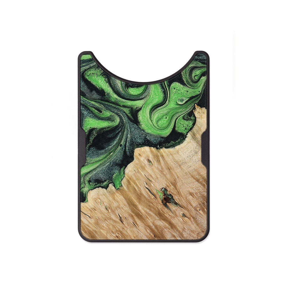 August has a smooth, light Maple wood surface with beautiful grain patterns. The vibrant green swirls above it add a striking contrast, creating a unique and eye-catching design.