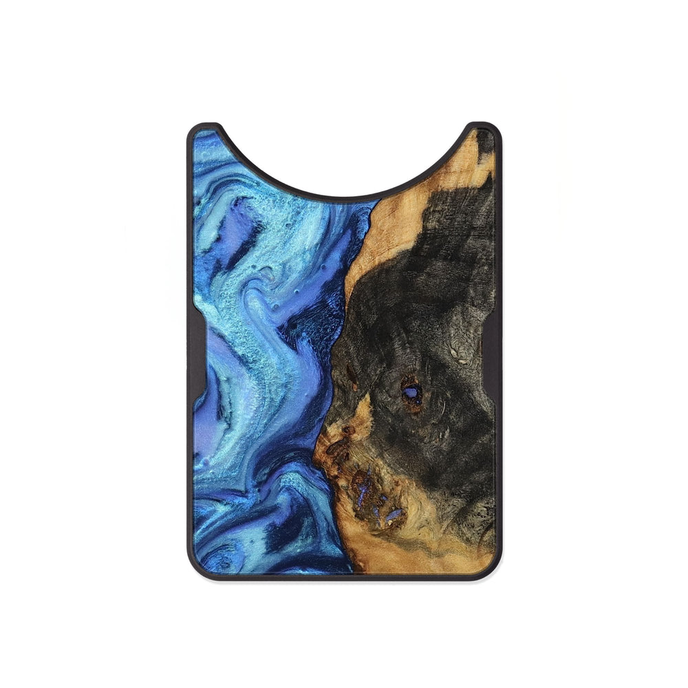 Baby has rich, dark wood tones that contrast beautifully with swirling shades of blue. The smooth patterns create a calming, dynamic feel, making it an eye-catching piece.