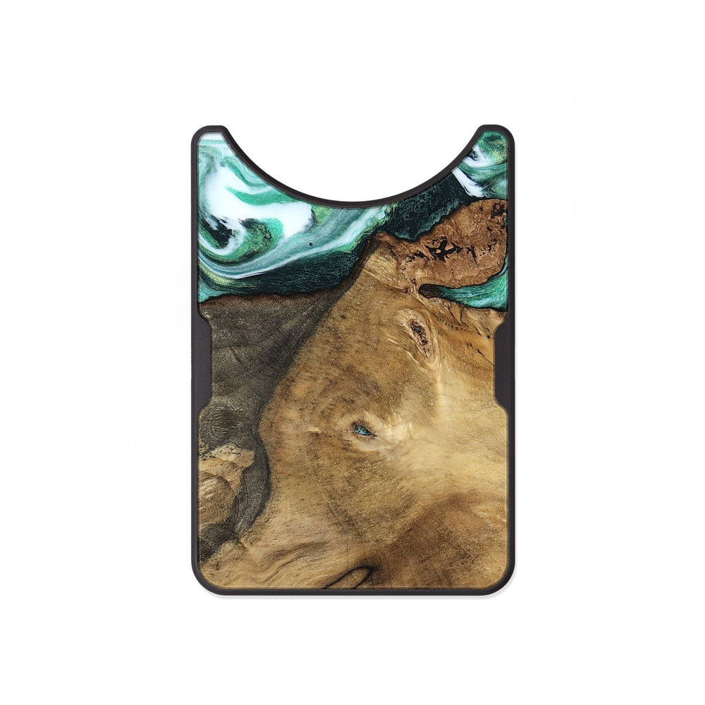 Carley shows off rich, warm tones of Buckeye wood with unique patterns in the grain. It beautifully contrasts with swirling shades of teal and white, creating a soothing visual harmony.