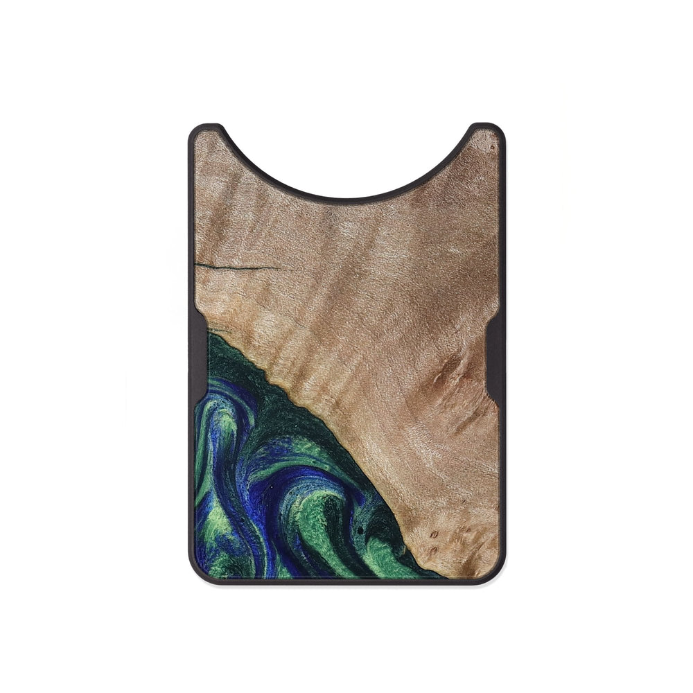 Eugenia has a smooth, light wood surface with subtle patterns that add warmth. The rich, swirling colors of blue and green create a striking contrast, giving it a unique and lively character.