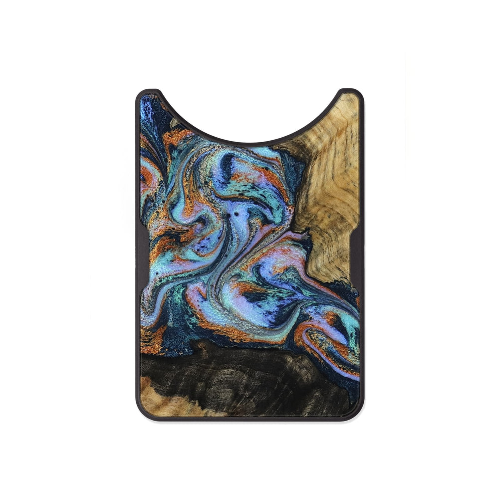 Finis features a beautiful swirl of blue and orange hues that dance across the surface. Its rich buckeye wood grain adds a warm, natural character to the overall design.
