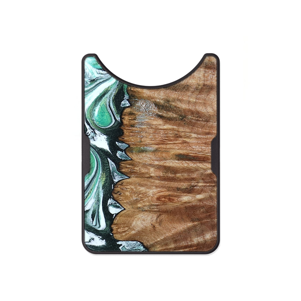Each wallet is machined from a single block of Aluminum, anodized, laser etched and then we add our unique Wood+Resin slice on the back. We designed our wallet to perfectly fit a standard credit card size, it will safely hold 1 card as well as it holds 5. You can definitely slide more than 5 in but we designed it to be a perfect fit for up to 5 cards.