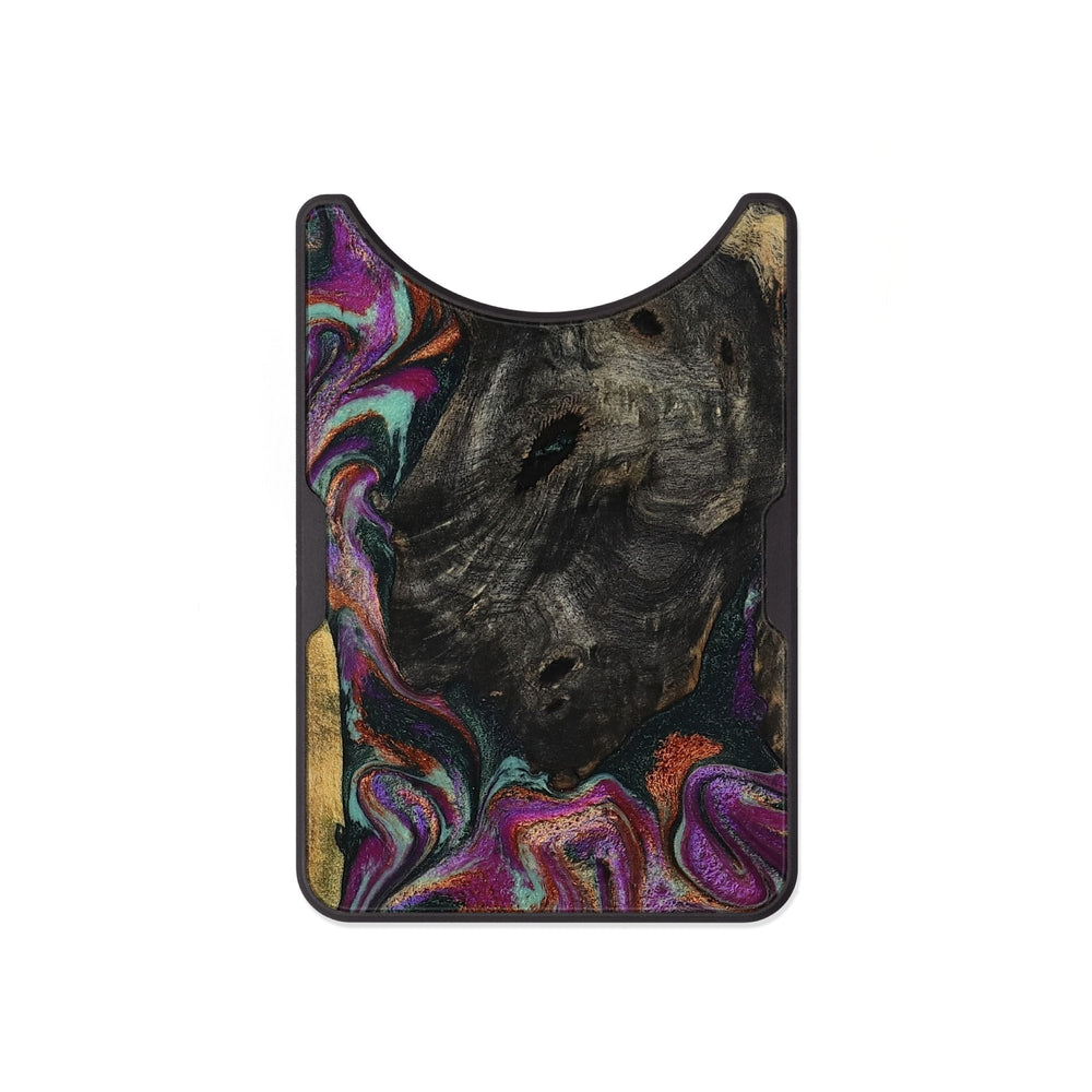 Ida is a piece of Buckeye wood with a rich mix of dark and light grains. It features vibrant swirls of purple and teal, creating a lively pattern that draws the eye.