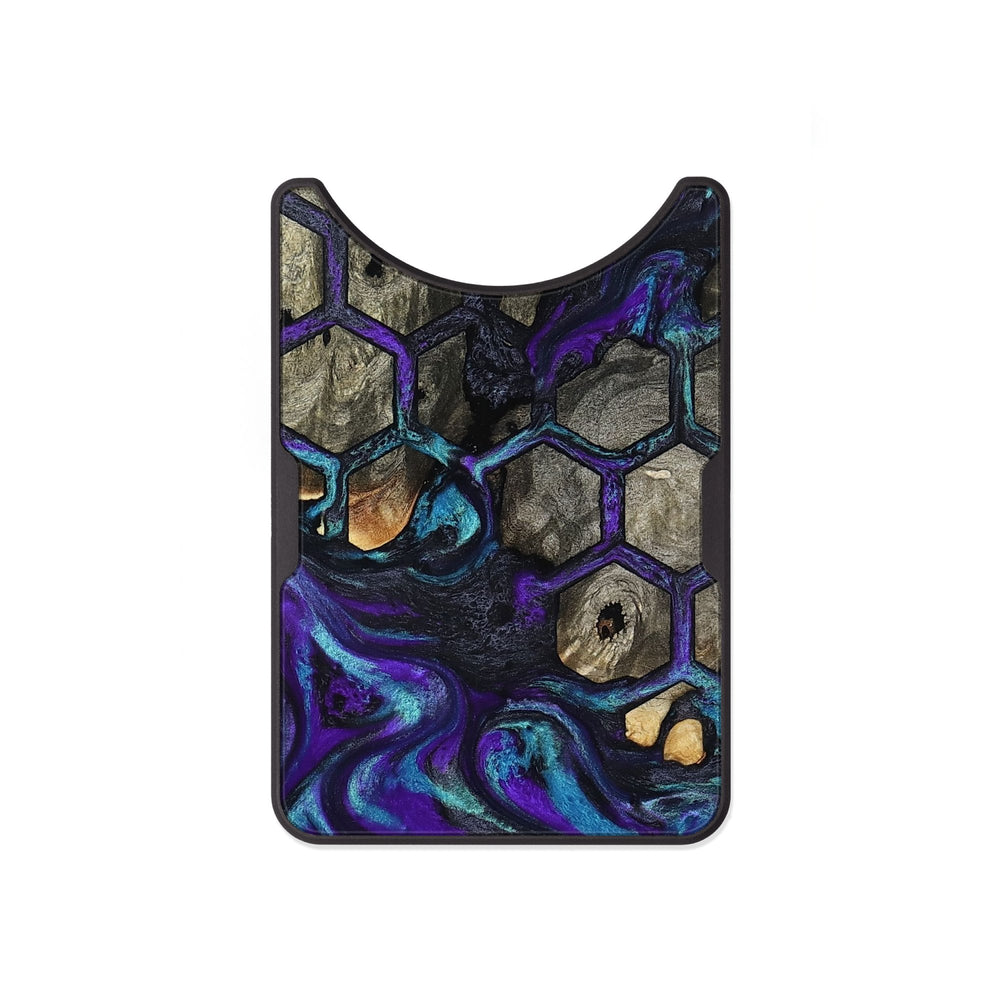 Ieshia has beautiful Buckeye wood with dark and light tones. Intertwined with vibrant swirls of purple and blue, it features a hexagonal pattern that adds depth and interest.