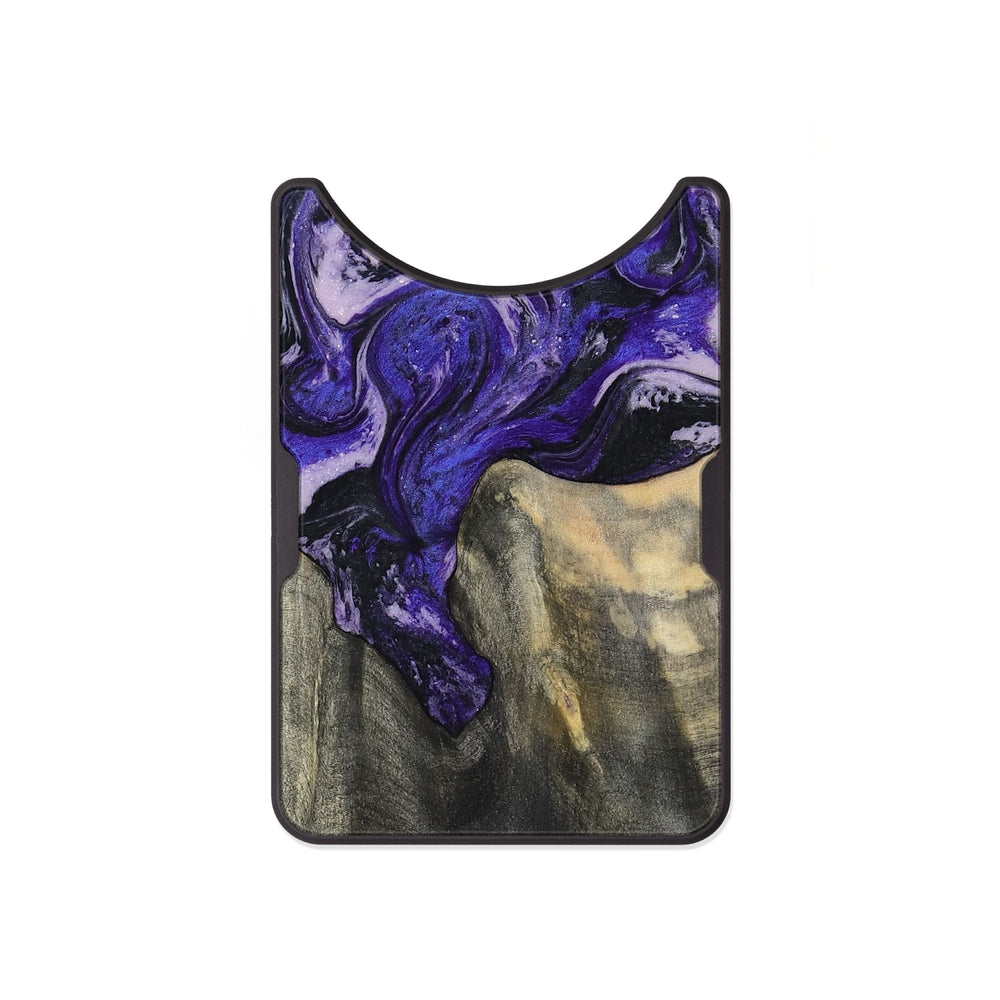 Ivy features rich swirls of purple and blue, creating a dynamic visual flow. The warm tones of the Buckeye wood contrast beautifully with the vibrant colors, adding depth to the piece.
