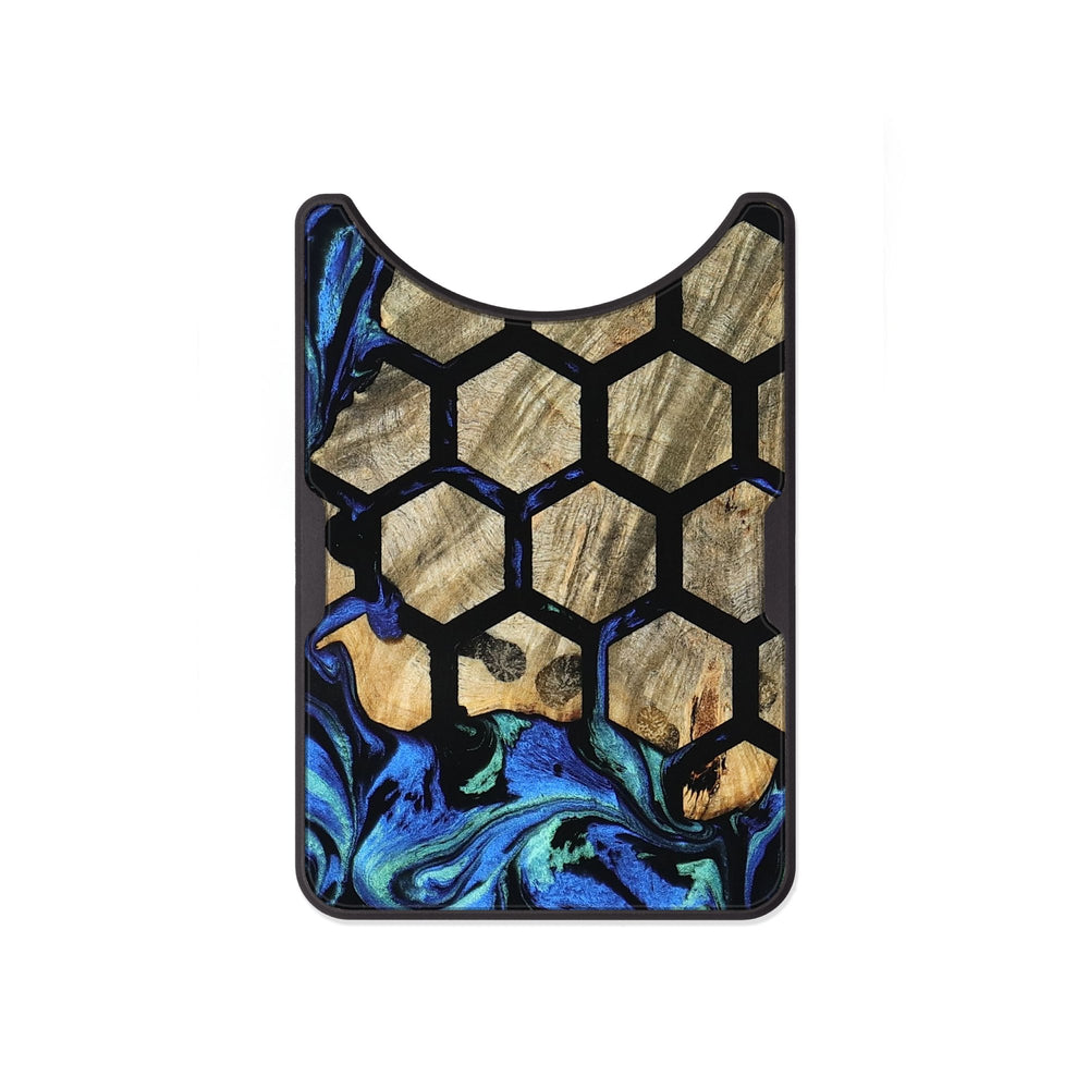 Kiara features a beautiful mix of Buckeye wood with swirling shades of blue and green. The pattern resembles a honeycomb, adding a unique texture to the artwork.