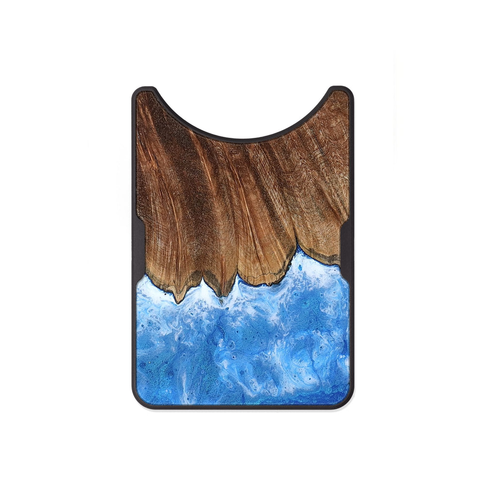 Mittie has rich, warm tones of Maple wood that showcase natural grain patterns. Its smooth surface flows into a vibrant blue area, creating a beautiful contrast.