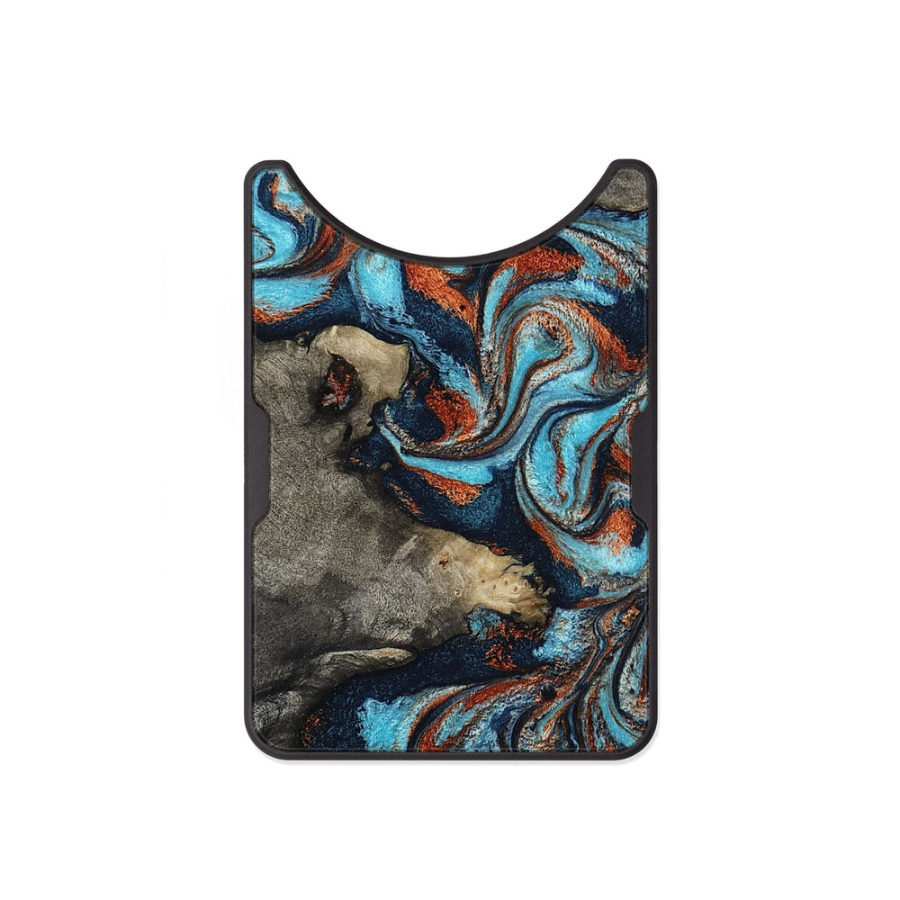 Natalya has beautiful swirls of blue and orange that dance across its surface. The natural wood grain adds a warm, earthy touch, creating a unique and vibrant piece.