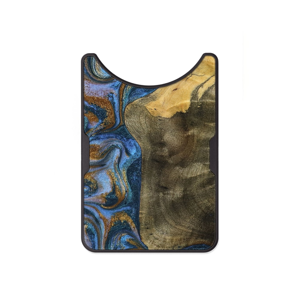 Ramiro features a beautiful swirl of blue and earthy tones, creating a wave-like pattern across its surface. The unique combination of colors and the rich texture of the Buckeye wood makes it an eye-catching piece.