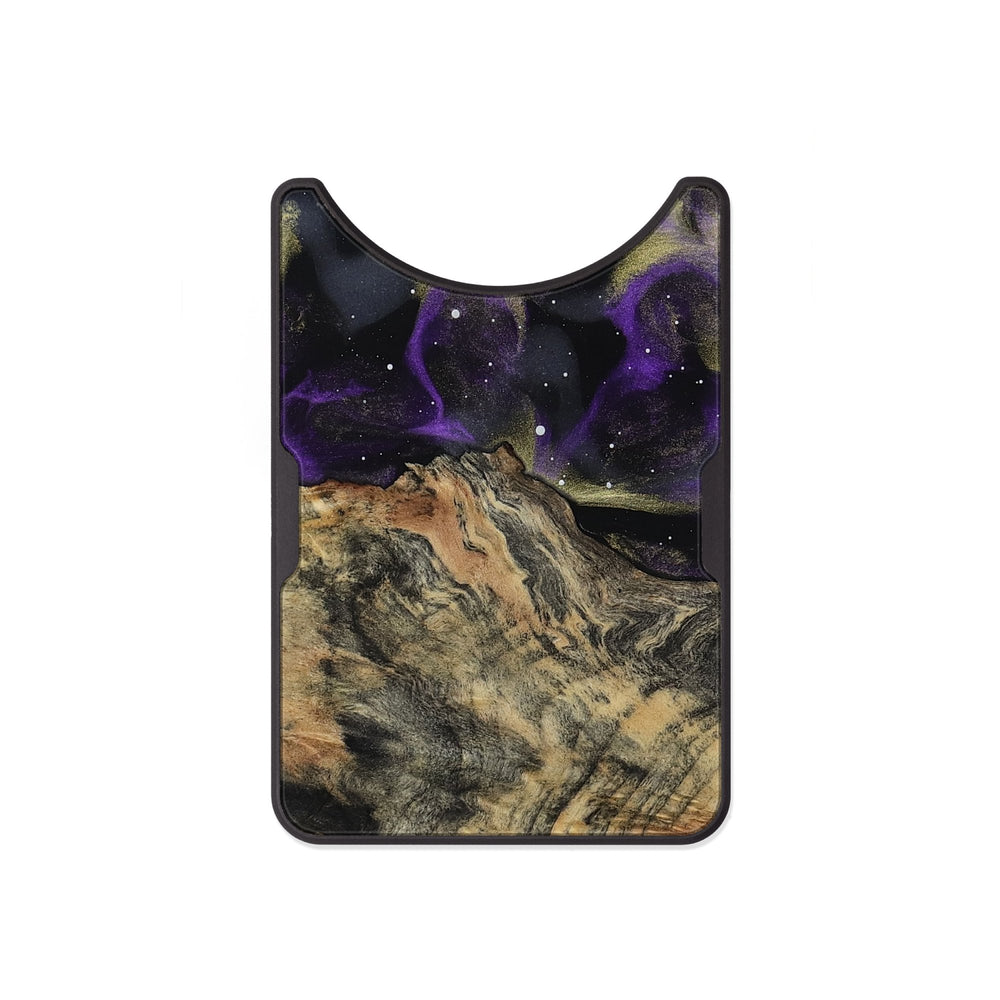 Shanon has striking patterns of wood in warm, earthy tones. The beautiful background blends deep purples and touches of gold, creating a cosmic feel.