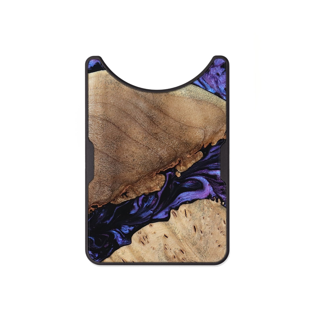 Teena has a warm, light brown color with smooth, subtle grain patterns. Its unique shape contrasts beautifully with vibrant swirls of purple and blue, creating an eye-catching design.