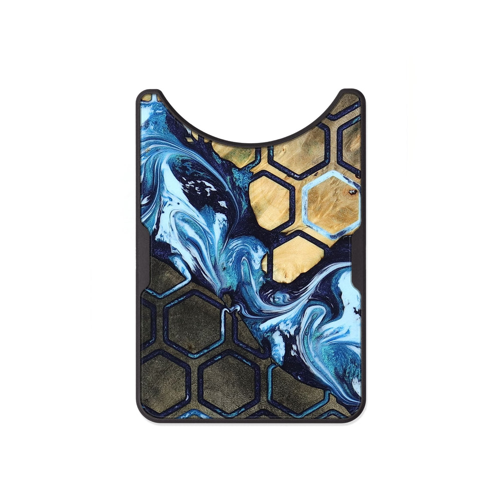 Terra has a beautiful mix of deep blues and warm golds flowing across a patterned hexagonal background. The design creates a calming yet dynamic visual effect, inviting a closer look.