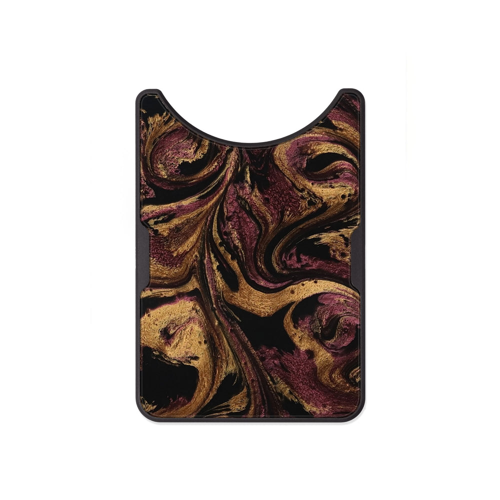 Zelda has swirling patterns of deep burgundy and rich gold set against a dark background. The colors blend together in a smooth and flowing way, creating a warm and inviting feel.