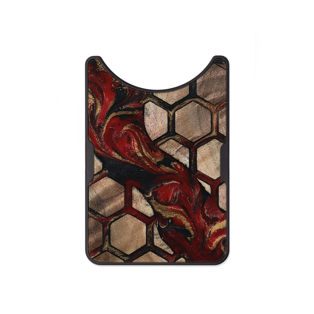 Alida has a beautiful maple wood surface with a warm, natural finish. It features a striking hexagonal pattern, highlighted by swirls of rich red tones that add depth and interest.