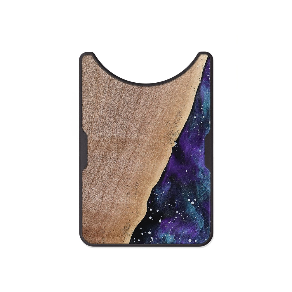 Aryan features smooth Maple wood with gentle curves and a light, warm hue. Its surface contrasts beautifully with a dark, swirling background of purple and blue, creating a stunning visual flow.