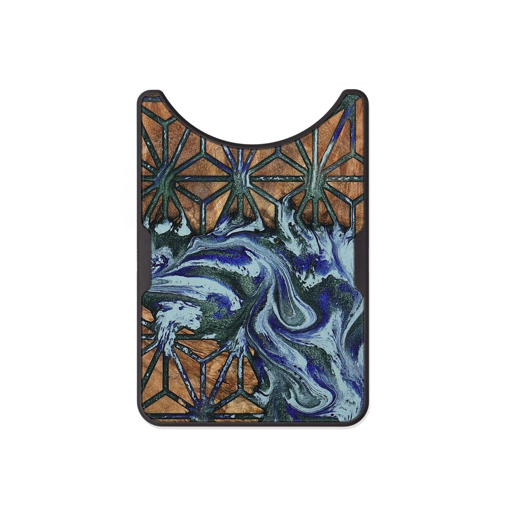 Aurelia features a warm Maple wood base with a beautiful geometric pattern. Its vibrant swirls of blue and white create a lively contrast, adding depth and interest.