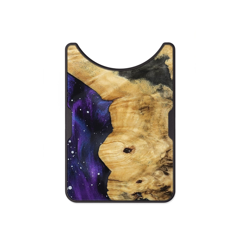 Delmer is a stunning piece of Buckeye wood with natural grain patterns and unique features. It has a beautiful contrast of light wood tones against a vibrant purple background, creating a lovely visual effect.