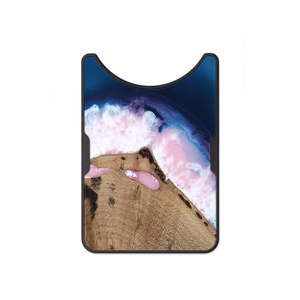 Earline has a warm, rich texture from the Maple wood, showcasing a blend of soft browns with subtle variations. The art features a gentle wave of pink and white, creating a calm and inviting contrast against a deep blue background.