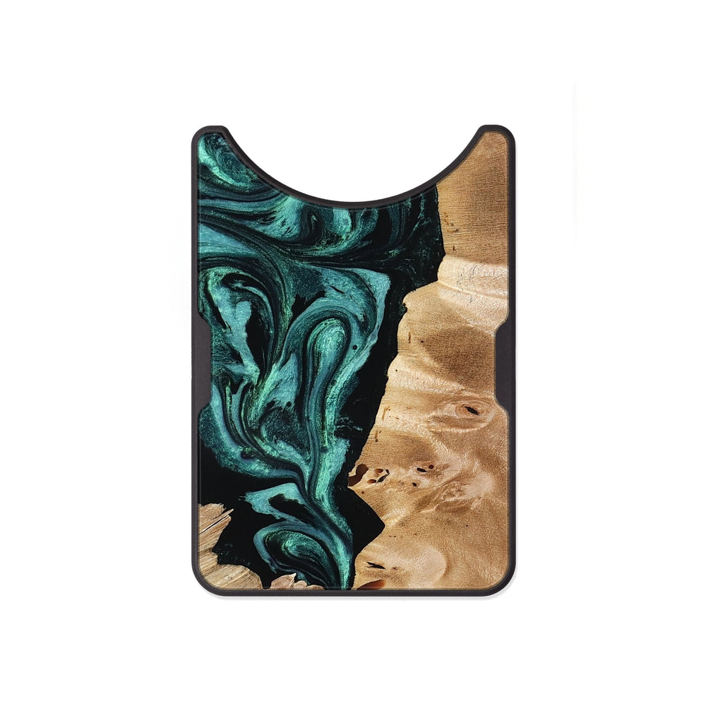 Elisha has beautiful Maple wood with a warm, natural tone. The design features a smooth flow of turquoise swirls contrasting with the wood's pattern.